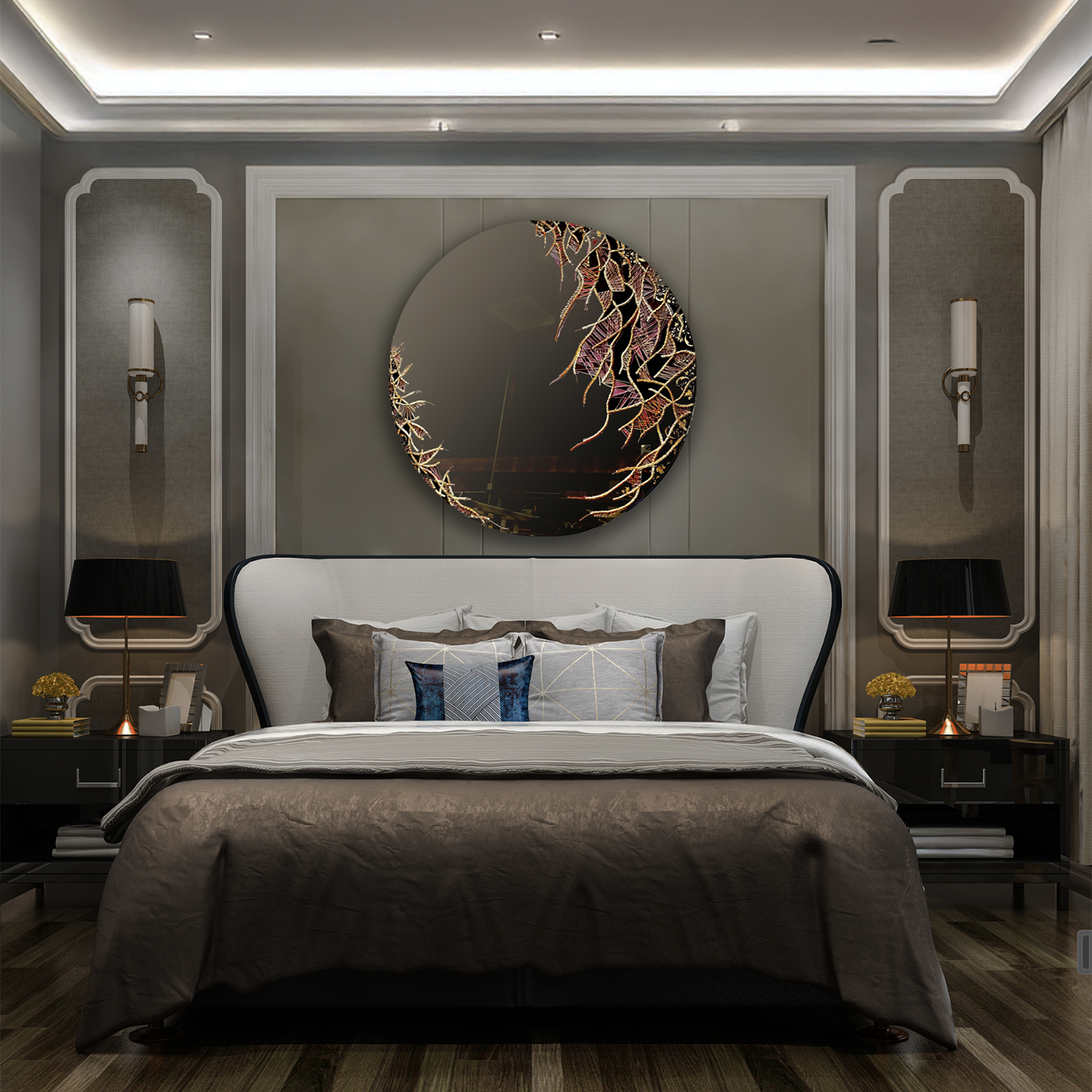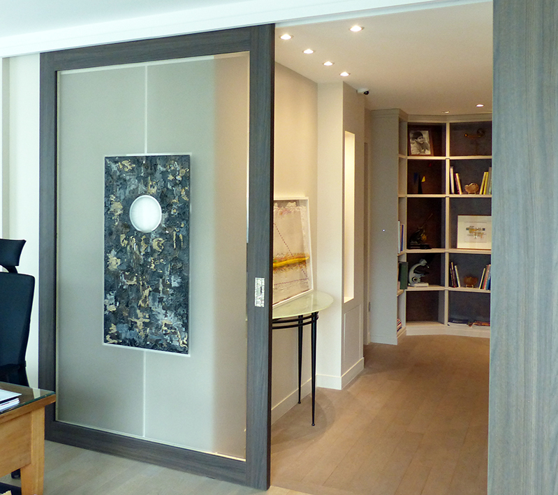 Intégrées à des réalisations sur mesure, panneaux décoratifs, portes artistiques, mobilier d’exception etc., mes oeuvres viennent révéler l’essence du luxe à la française.