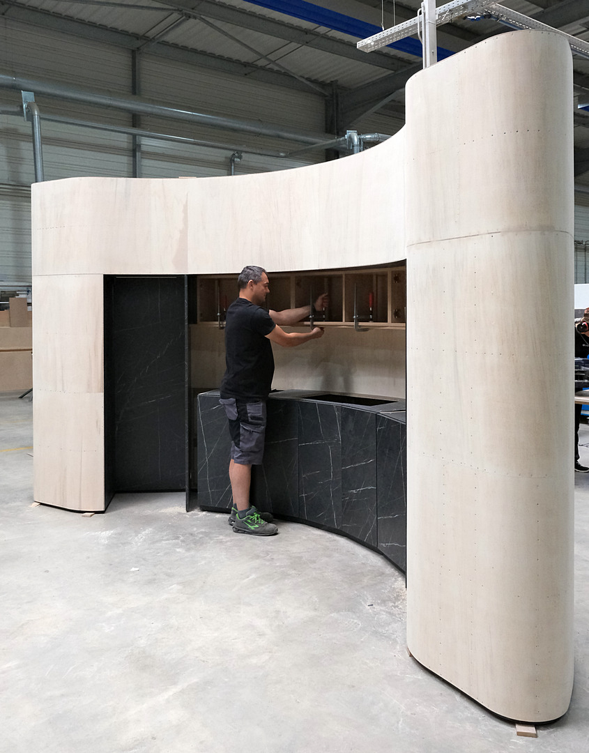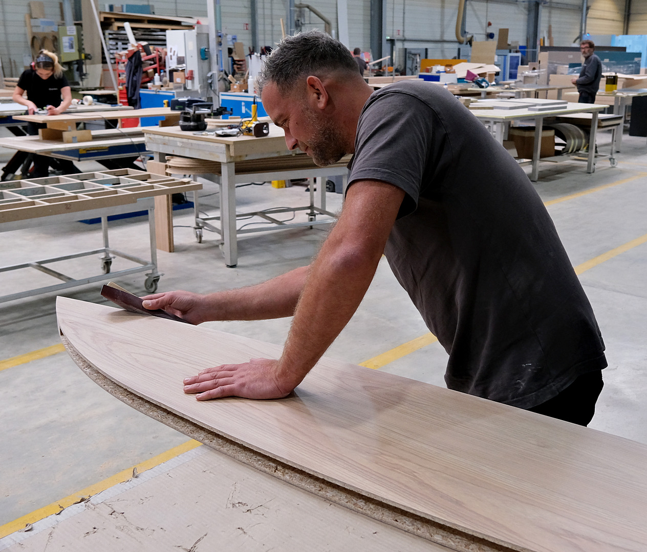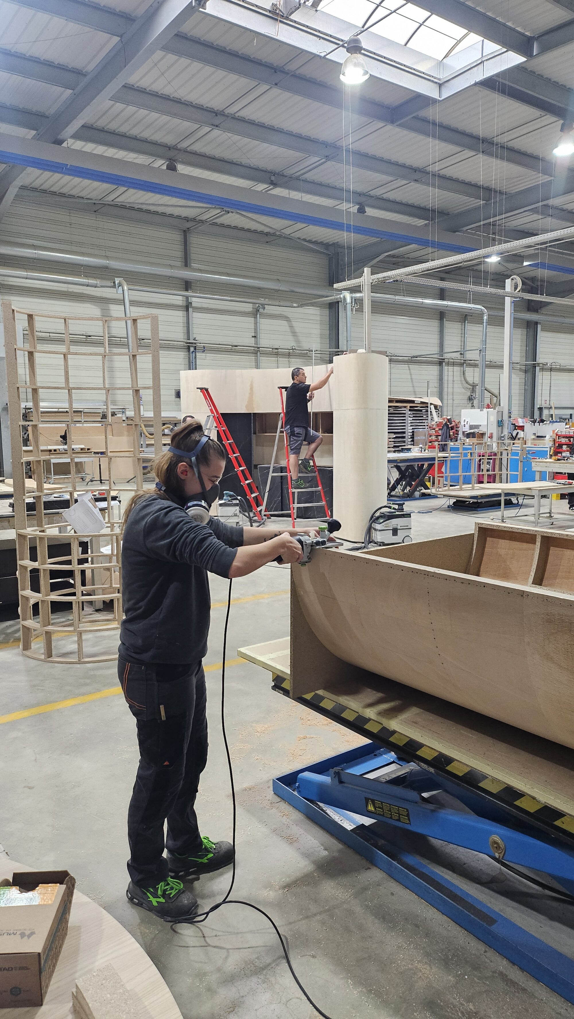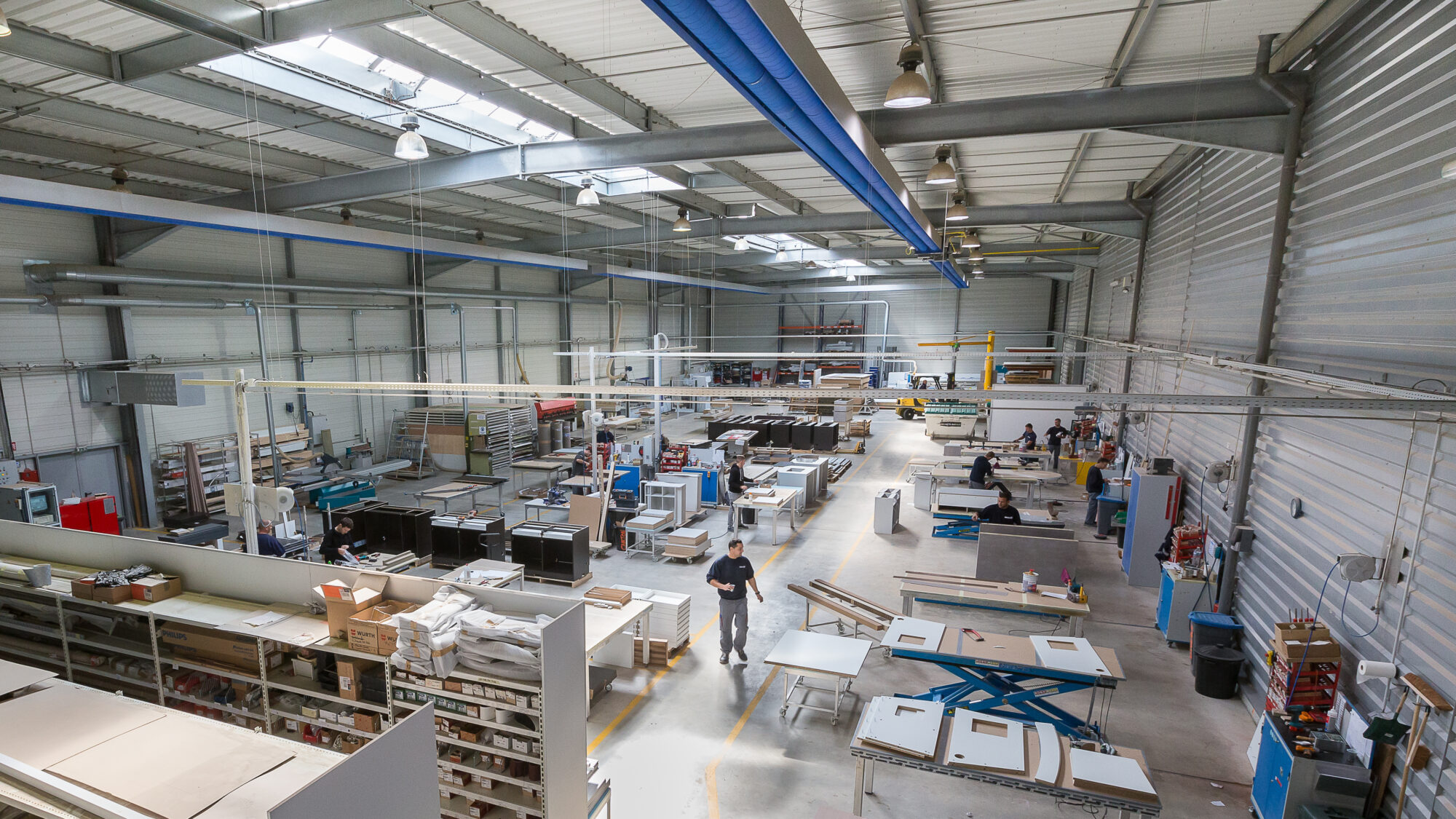 Atelier de production de 4 000 m² équipé de centres d’usinage CNC, scies à panneaux, plaqueuses de chants automatiques, ainsi qu’un atelier de tôlerie intégré (pliage, découpe, soudure). Bureau d’études et cellule architecturale internes assurant conception, prototypage et accompagnement technique. Parc logistique et véhicules dédiés pour la livraison et la pose sur tout le territoire national.
